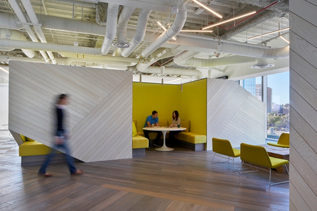 廣州裝修設計公司認為如果糾結于用什么點亮設計感,家具無疑是較好的選擇。從設計到施工到家具甚至裝飾,家具到底能讓一個辦公室加分多少。 在一套辦公室裝修設計后,搶眼的莫過于色彩形狀各異的家具了,本套辦公室裝修設計靈感源于其地理位置特點,木質地板以對角線的方式安裝,交錯的照明燈具,廣州裝修設計公司其實對采光性和色彩的把握有時候不那么注重,缺少一些亮色來提亮空間。